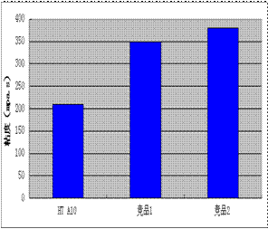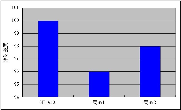 使用競(jìng)品1和2制備的酞菁藍(lán)色漿4 星期后出現(xiàn)沉淀,而HT A10制備的色漿4 星期后仍沒有沉淀。HT A10制備的色漿冷熱循環(huán)后的粒徑變化為5 nm,競(jìng)品1和2制備的色漿粒徑變化分別為11 nm和9 nm。色漿熱存放實(shí)驗(yàn)和冷熱循環(huán)實(shí)驗(yàn)證明HT A10對(duì)酞菁藍(lán)穩(wěn)定作用優(yōu)于競(jìng)品1和2。